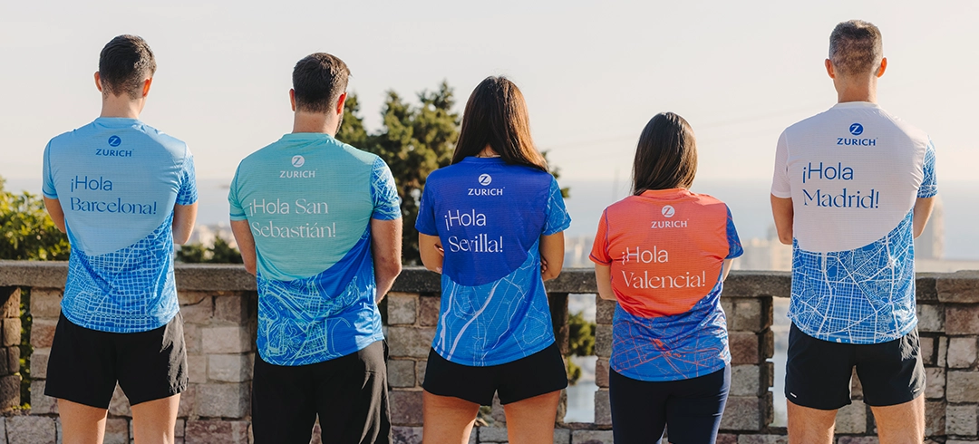 Cinco corredores con las nuevas camisetas de running de Zurich Seguros